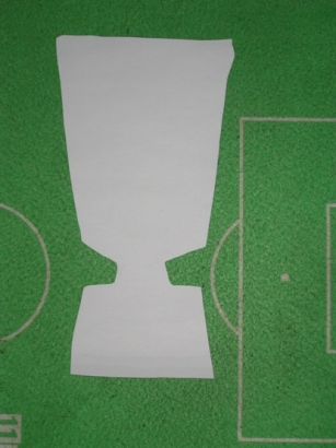 Foto: Papierpokal Nummer zwo (auch schief) auf 11Freunde-Fußmatte (jetzt noch schmutziger)